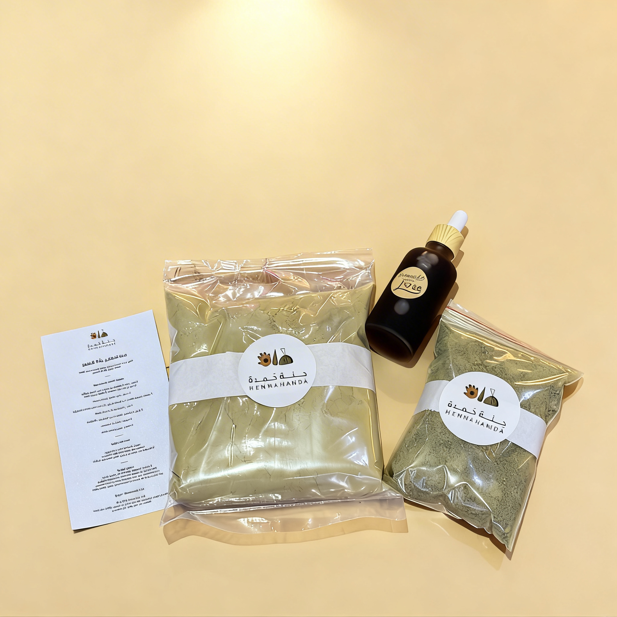 العدة مصممة بحيث توصلك كل العناصر اللي تحتاجينها في جلسة حنّة متكاملة: